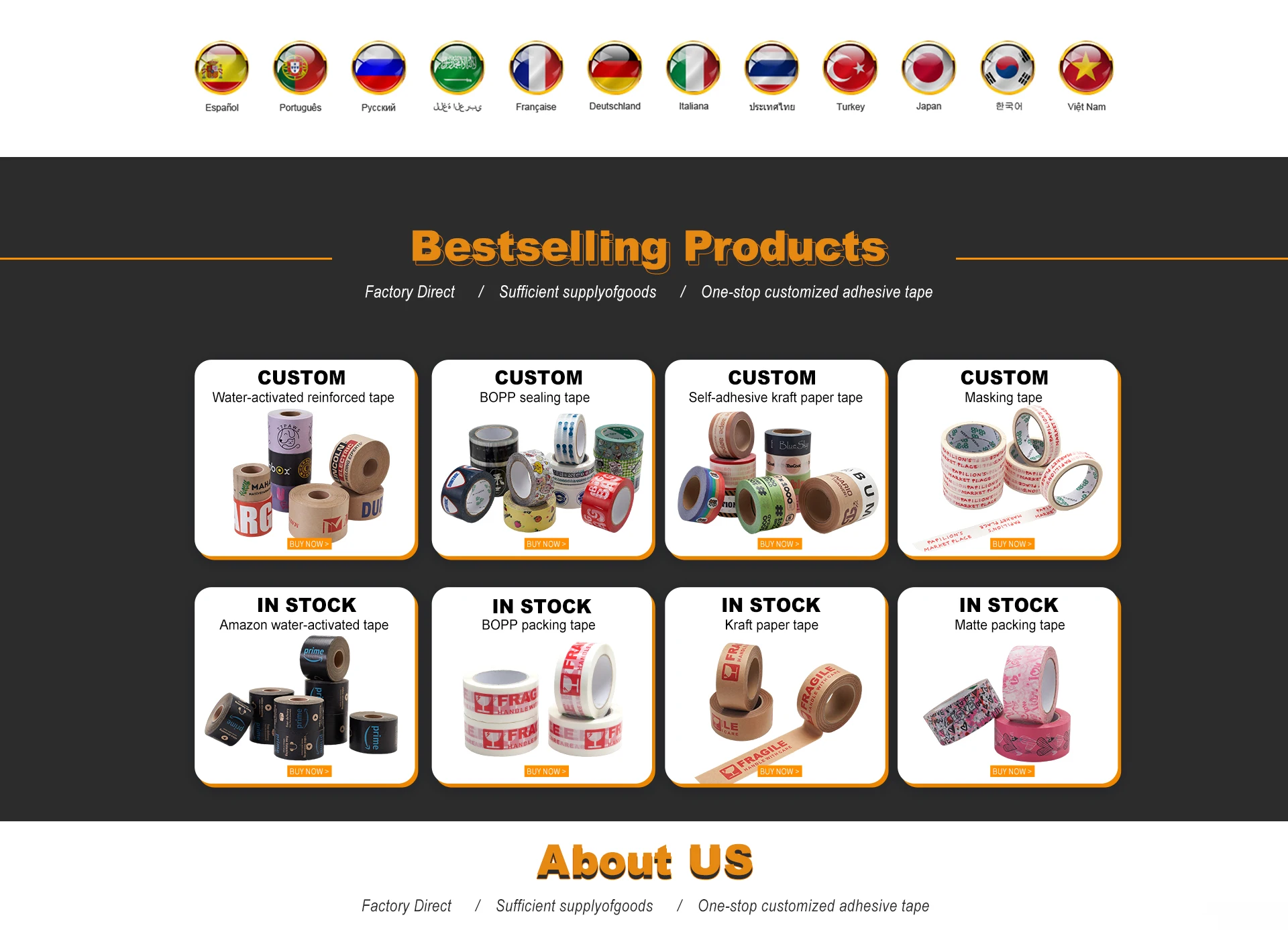 Productos principales:Impresión personalizada, Kraft cinta de papel, cinta BOPP, cinta adhesiva